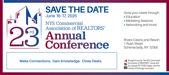 Registration is now closed for the 23rd Annual NYS Commercial Association of REALTORS Conference! Please register onsite June 16-17 with this registration form.